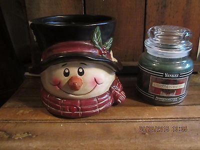 ~PRIM~FOLK ART~CERAMIC ELECTRIC SNOWMAN CANDLE WARMER~NEW YANKEE CANDLE~