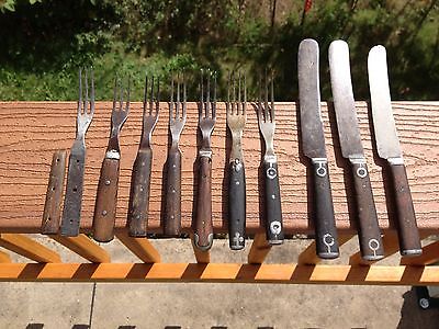 10 Wood & Pewter Handled Forks Knives Civil War Americana Utensils Cutlery