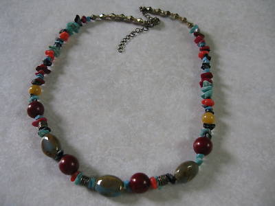 Vintage style antique gold tone genuine stone necklace