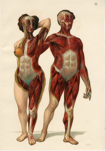Title (ebay affiliate link): c1900 FEMALE MALE MUSCLES MUSCULAR SYSTEM Antique Lithograph Print Fischer