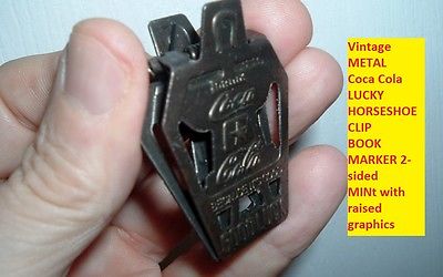 Title (ebay affiliate link): Antique Coca Cola Soda Pop Coke Metal GOOD LUCK HORSESHOE BOOK MARKER CLIP