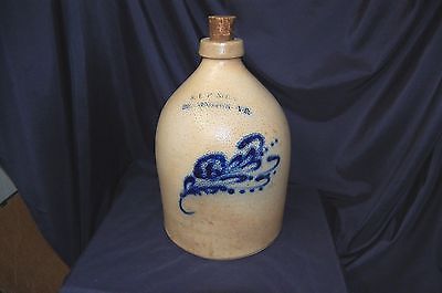 antique crock jug cobalt foral motif Norton Bennington Vt must see