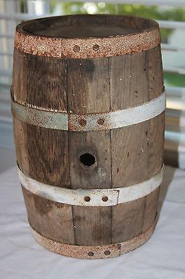 ANTIQUE SMALL OAK WOOD WINE WISKEY BARREL 12" TALL SOLID BOTH ENDS