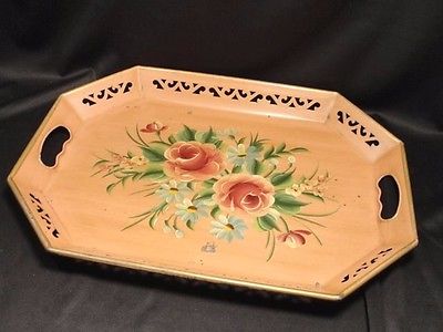 Title (ebay affiliate link): Vintage SHABBY Pink Rose TOLEWARE METAL TRAY Chic! hexagonal Handpainted