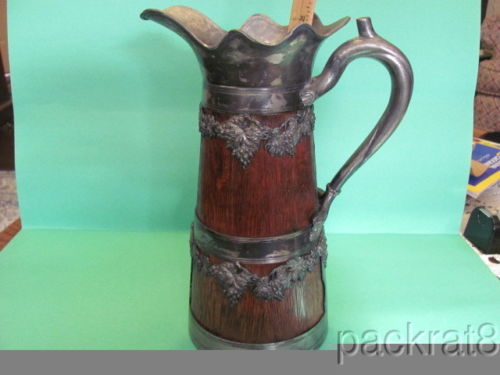 Tankard Oak and silverplate turn of the century