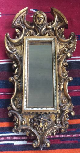 Title (ebay affiliate link): Vintage 24" ORNATE WALL MIRROR Gold Resin Hollywood Gothic Regency MCM 1960s