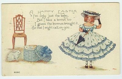 Title (ebay affiliate link): Easter Artist Signed Postcard Girl Easter Dress Parasol White Rabbits Hatbox