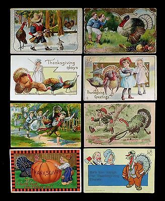 Group of 8 Antique Thanksgiving Postcards Embossed Artist Signed Children Comic