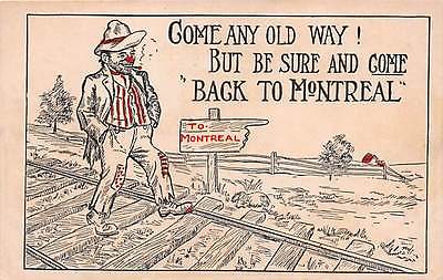 Comic Hobo Walking Tracks Come Back To Montreal Quebec Canada Postcard cx3059