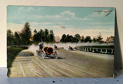 automobile AUTO RACE original postcard 1910 car racing pc race track cars