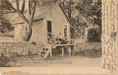 Bradley NY-Men Sit On Porch Of Tiny Bradley Post Office-Sullivan County Postcard