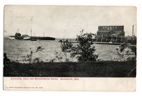 Title (ebay affiliate link): Elevator, Coal and Merchandise Docks, Washburn, WI antique postcard 1907 cancel
