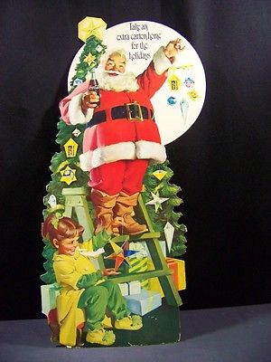 Vintage Coca Cola Christmas Santa cardboard Display Stand up Poster