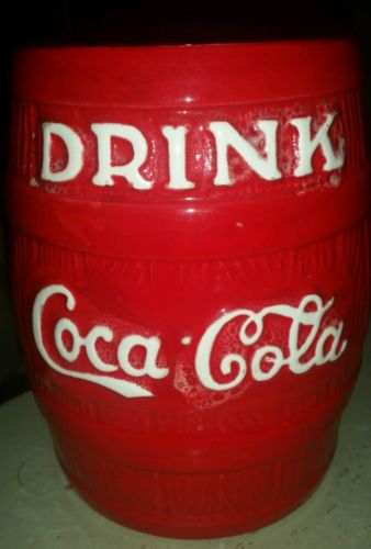 Title (ebay affiliate link): Vintage Coca Cola red ceramic barrel money coin bank