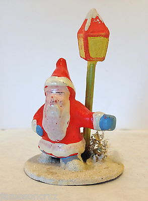 Antique 1930s German Christmas Santa Lamp Post Putz Toy Diorama 3-1/8" Tall