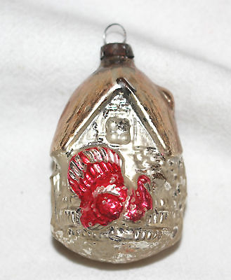 Turkey in front of Cottage. 1920s Glass Christmas Ornament. German