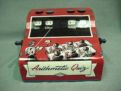 Title (ebay affiliate link): VINTAGE WOLVERINE MADE IN THE USA ARITHMETIC QUIZ TIN TOY