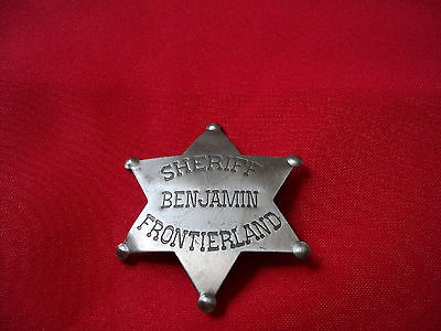 NICE 1960S-70S? FRONTIERLAND SHERIFF'S METAL BADGE-DISNEYLAND-STAR, PIN INTACT