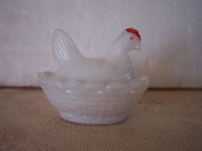 Westmoreland Hen on Nest Opalescent Milk Glass Salt