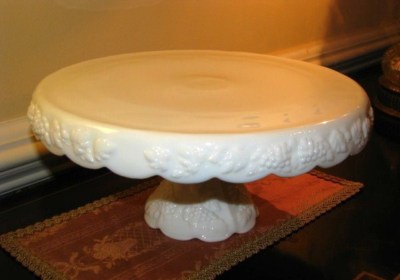 WESTMORELAND Milk Glass PANELED GRAPE Cake Stand Mint!