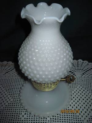 Vintage Milk Glass Table Lamp 10 2/8" Hob Nail Chimney
