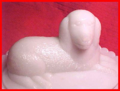 Old Figural Westmoreland Milk Glass Dog Lidded Jar