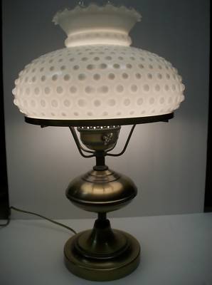 Lamp Hobnail Milk Glass Ruffled Shade Brass Lamp