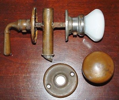 Title (ebay affiliate link): Antique Milk Glass & Brass French Door Knob Set with Rosettes and Latch