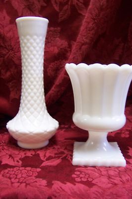 Milk Glass Vase (Quilted Diamond) & Stemmed Vase