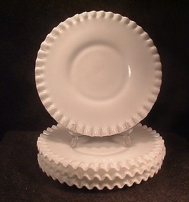 Title (ebay affiliate link): 4 Vintage Fenton White Milk Glass Hobnail Pattern 8.5 Inch Salad Plates Lot #1