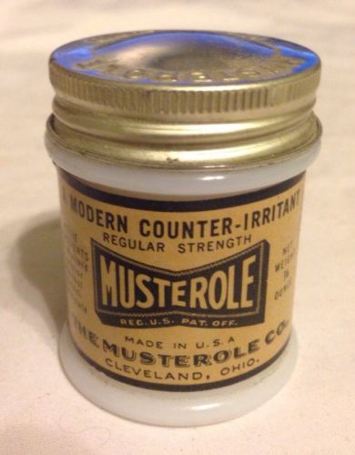 Vintage Jar Of Musterole In Milk Glass Bottle Full Excellent Label