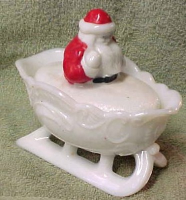 WESTMORELAND MILK GLASS SANTA ON SLEIGH/Paint
