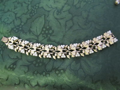 Vintage Milk Glass & Enamel Leaf Bracelet Pegasus Coro