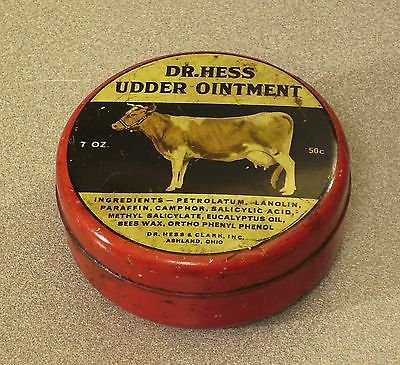 Title (ebay affiliate link): Antique Dr HESS MILKING COW UDDER MEDICINE Veterinary Tin Can Advertising Rare
