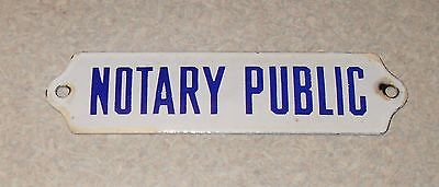 VINTAGE PORCELAIN OR ENAMEL NOTARY PUBLIC DOOR WALL SIGN~ROYAL BLUE&WHT~6"X1.5"