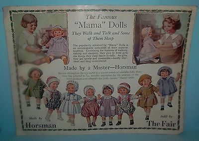 Title (ebay affiliate link): Cardboard Christmas ADVERTISEMENT Horsman Mama Dolls & American Toys ca 1929