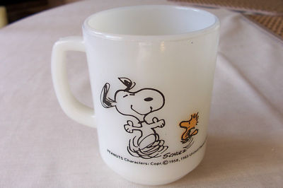 1965 Fire King Peanuts Snoopy Dancing Milk Glass Mug