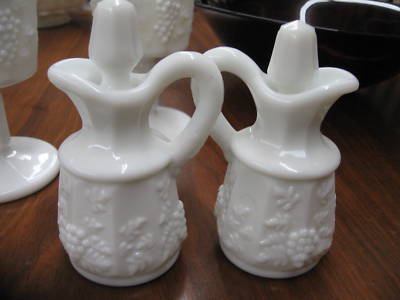 2 Westmoreland Paneled Grape Milk Glass Cruets Bottles