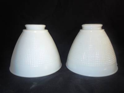 Pair, 2 Waffle Milk Glass Torchiere Diffuser Shades