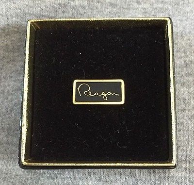 Title (ebay affiliate link): Ronald Reagan "Signature" Campaign Lapel Pin Original Box Vintage