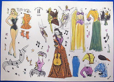 vintage 1950s Danish Pin Up PAPER DOLL Postcard, AXE, guitar, Arabian nights