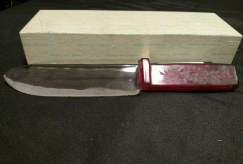 Title (ebay affiliate link): Vintage 1930s pink depression glass handle, clear blade, with flower on handle