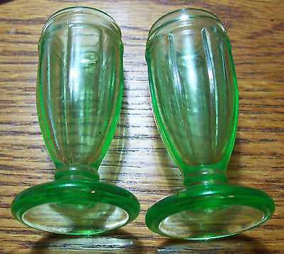 Older Hazel Atlas RIBBON Green Depression Glass Salt & Pepper Shakers, No Tops