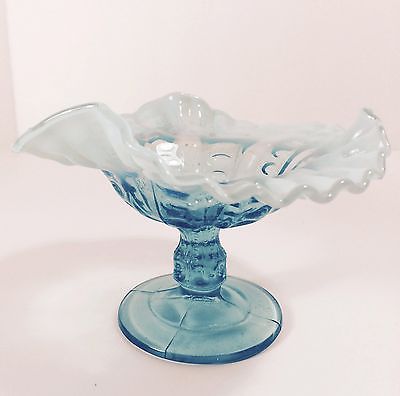 Turquoise Depression Glass Pedestal Candy Dish Bowl