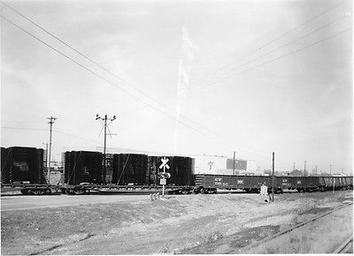 Title (ebay affiliate link): Illinois Terminal scene ATSF flat car with auto frame load Frisco gon 4x5 photo