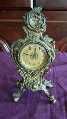 Title (ebay affiliate link): ANTIQUE BRASS GILTED BOUDOIR SHELF TABLE STAND CLOCK FOR PARTS REPAIR REFURBISH