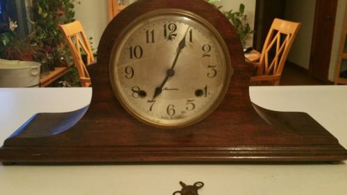 Vintage Antique Wooden Mantle Clock With 2 Sided Key