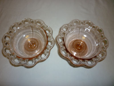 2 DEPRESSION GLASS PINK OLD COLONY LACE EDGE SHERBERT