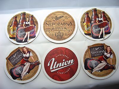 Coasters BEER, lot 3x2 different design,UNION BEER, Slovenian beer