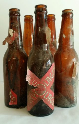 Title (ebay affiliate link): 6 pack Lucky Lager Beer Bottles 1935 Amber Paper label